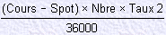 = Base annuelle de la devise secondaire = Nombre de jour pour la période de référence = Prix d'exercice de l'option = Taux de référence de la devise secondaire pour la période de référence qui sert de taux d'actualisation (Libor pour la seconde devise ou Pibor pour le Franc) |